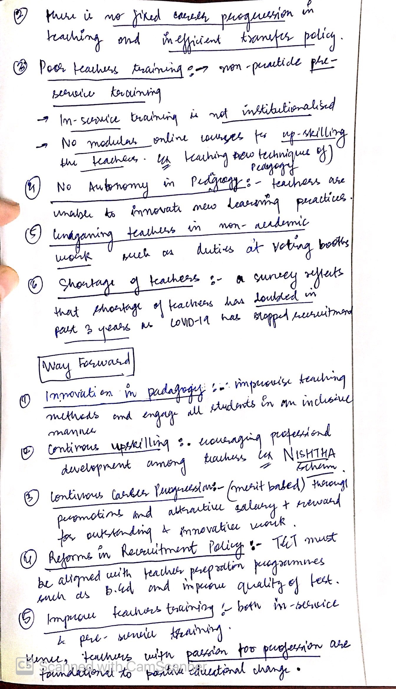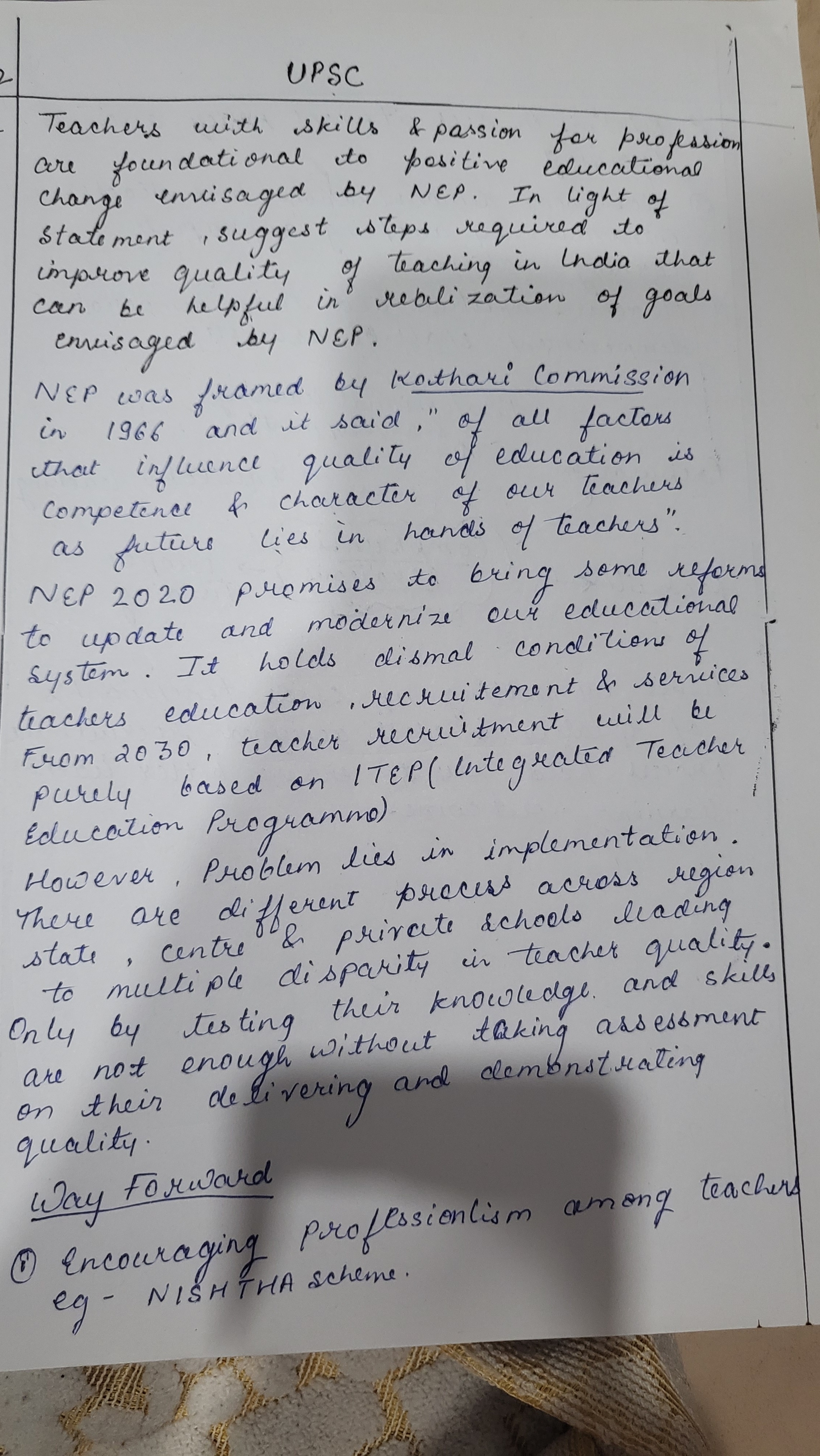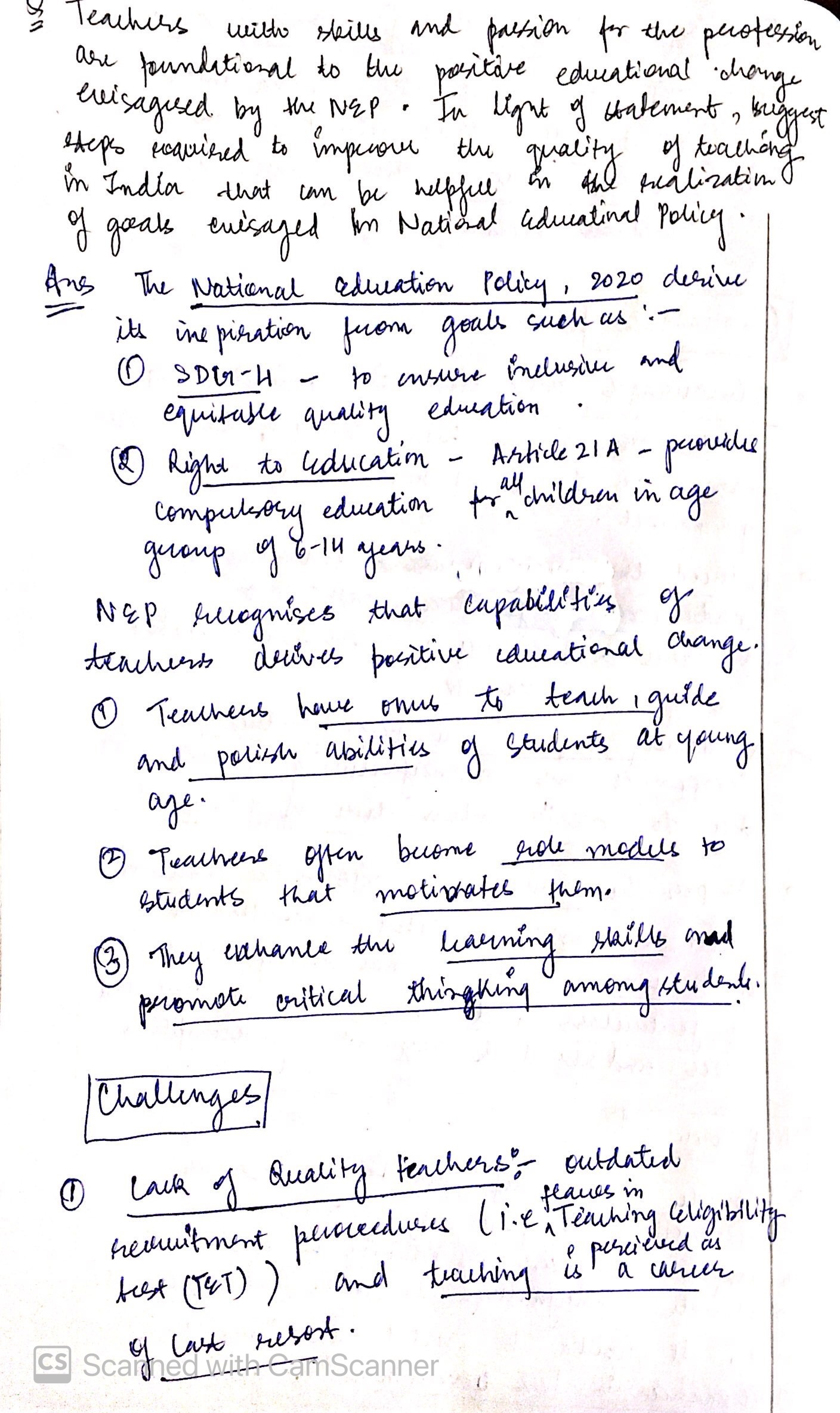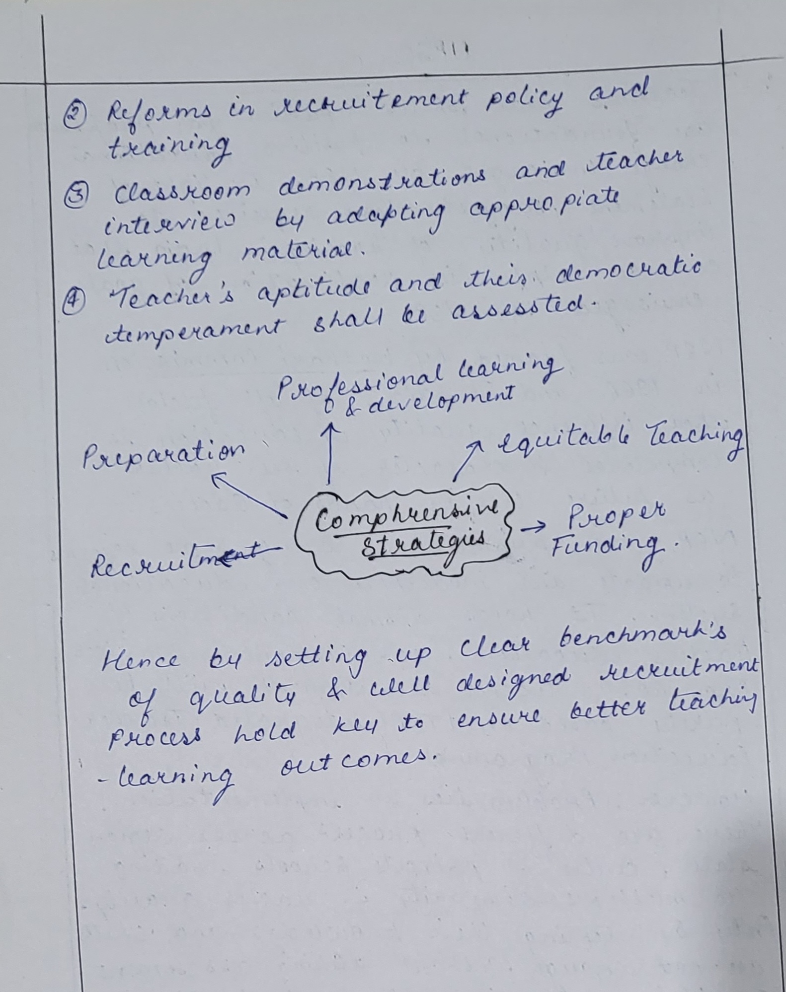 Very apt suggestions. I think introduction can be added to add more value to the answer, e.g., You can mention about emphasis of NEP about quality of teaching or link it with SDGs or RTE Act.