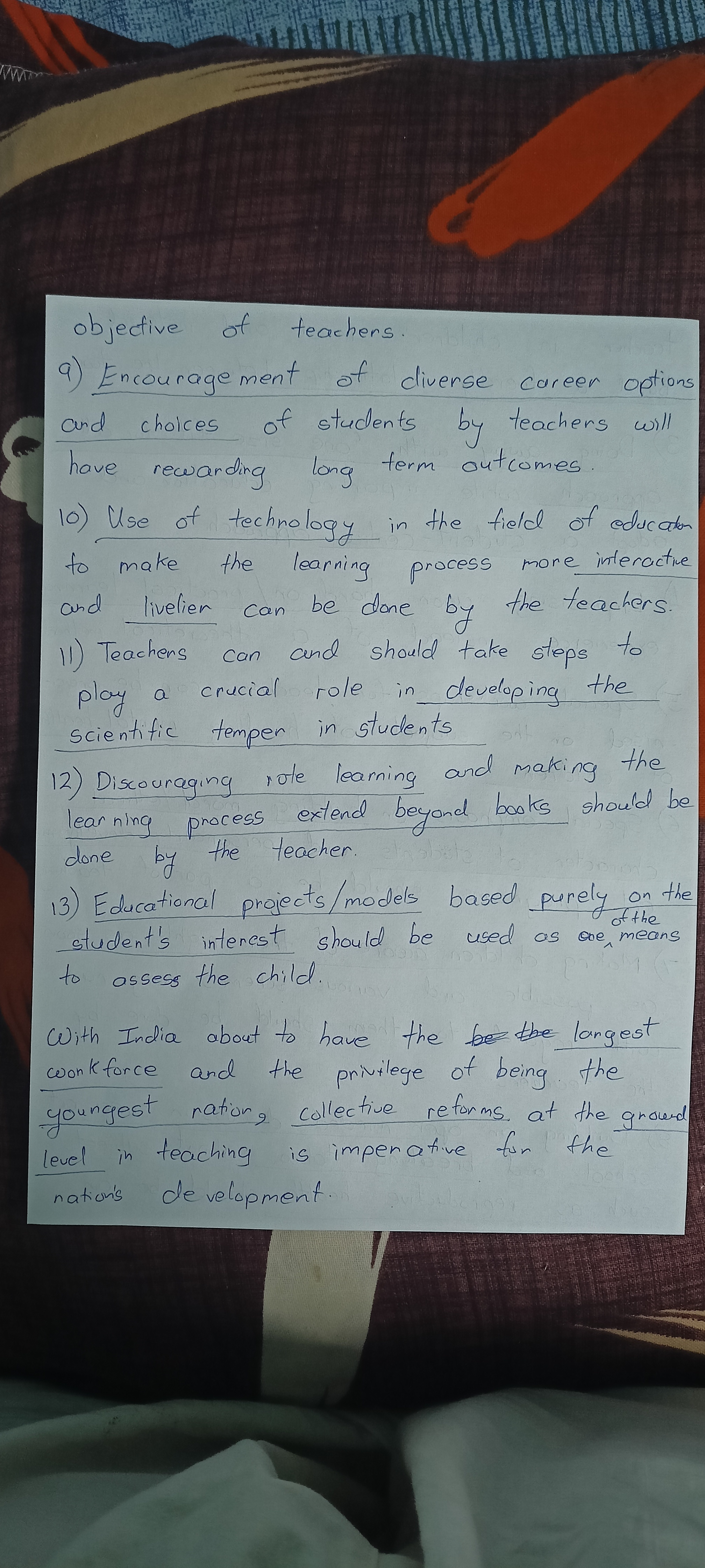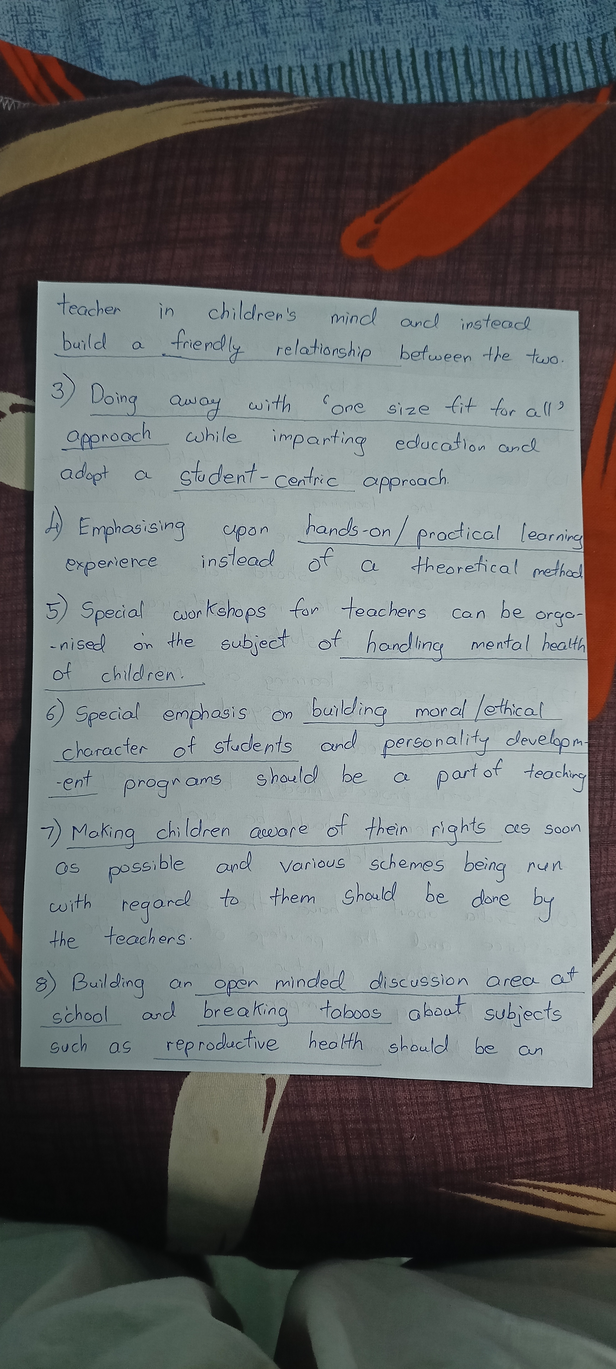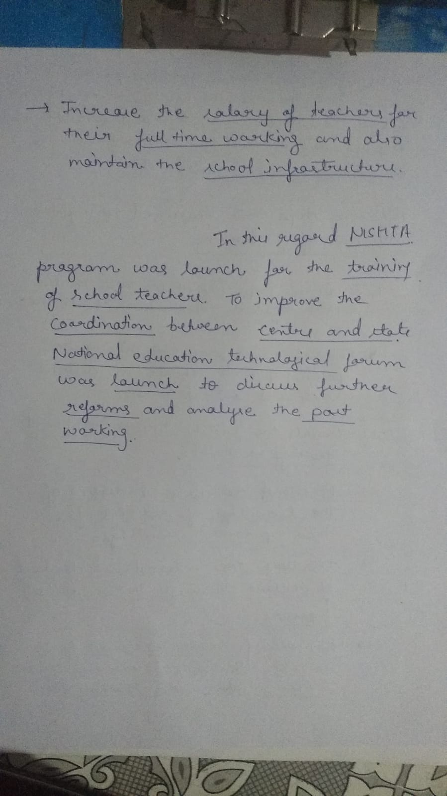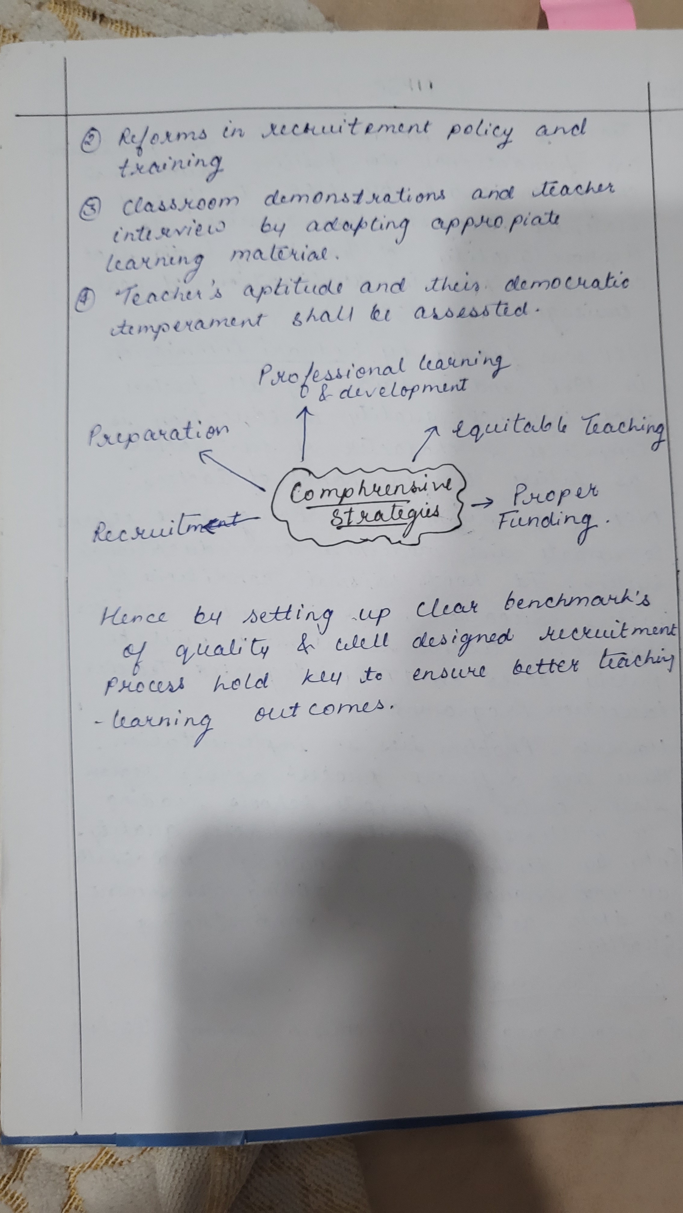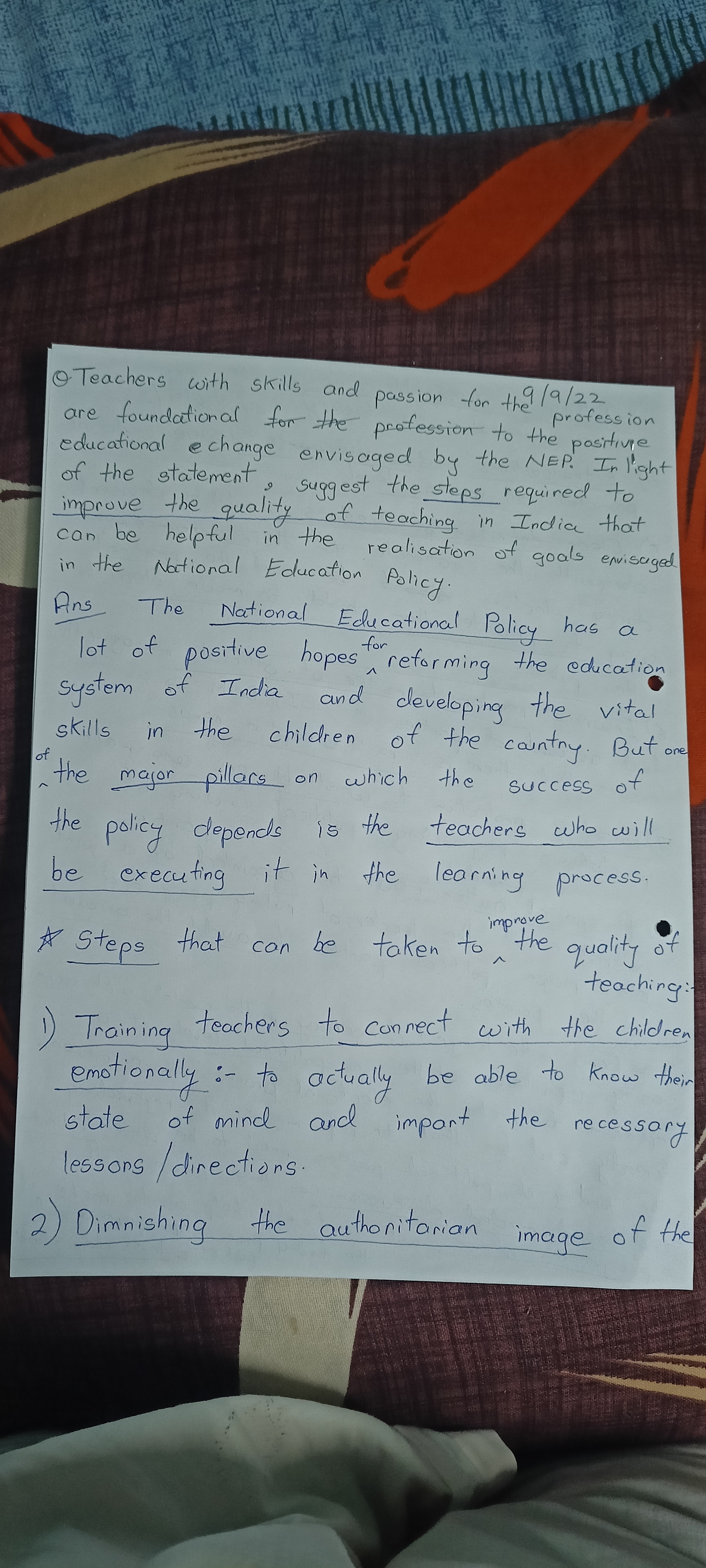 Very apt suggestions. I think introduction can be added to add more value to the answer, e.g., You can mention about emphasis of NEP about quality of teaching or link it with SDGs or RTE Act.