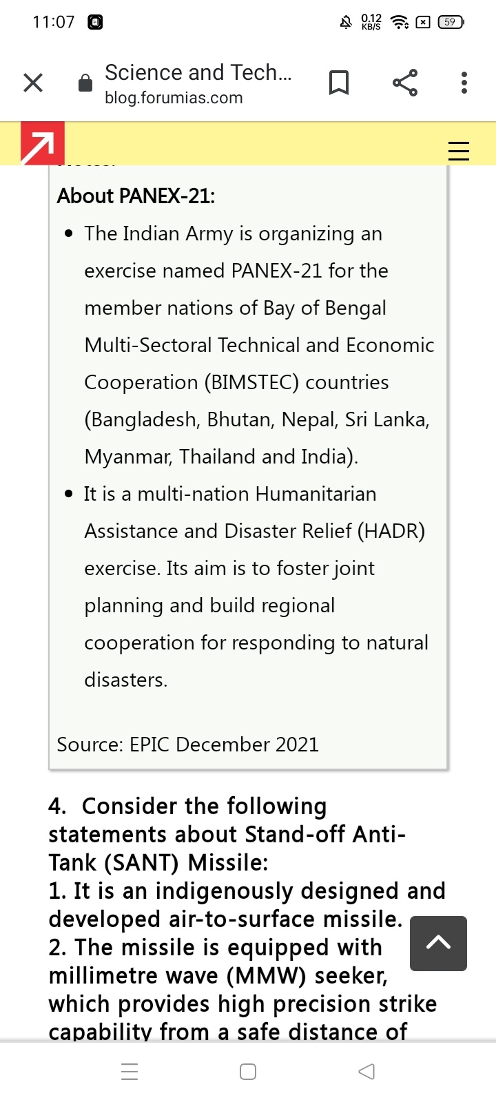 *The Indian Army is organizing an exercise named PANEX-21 for the member nations of Bay of Bengal Multi-Sectoral Technical and Economic Cooperation (BIMSTEC).