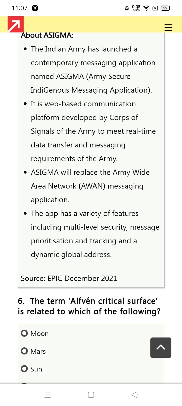 *The Indian Army has launched a contemporary messaging application named ASIGMA (Army Secure IndiGenous Messaging Application).