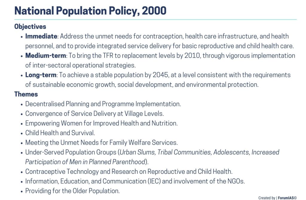 Urbanization: TFR in urban and rural areas is 1.6 and 2.1 respectively (NFHS-5). Migration and urbanization tends to lower the birth rate. Hence, more employment opportunities and urbanization will help in reducing population growth rate.