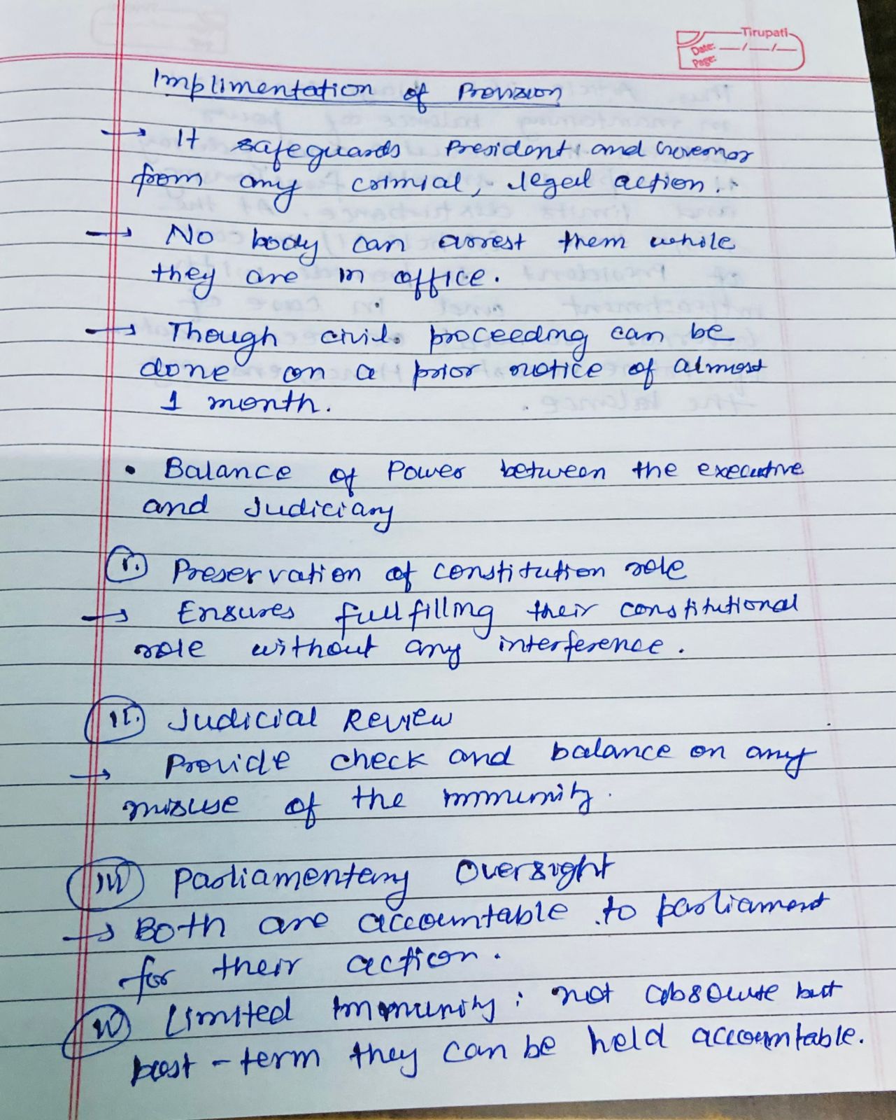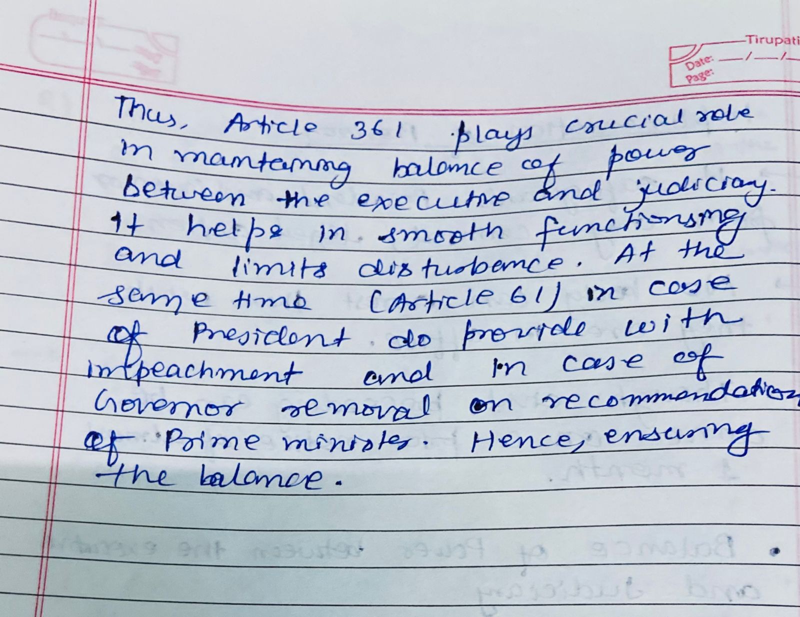 2) Analyze the implications of Article 361 of the Indian Constitution concerning the immunity of the President and Governors. How does this provision impact the balance of power between the executive and judiciary? (250 words).