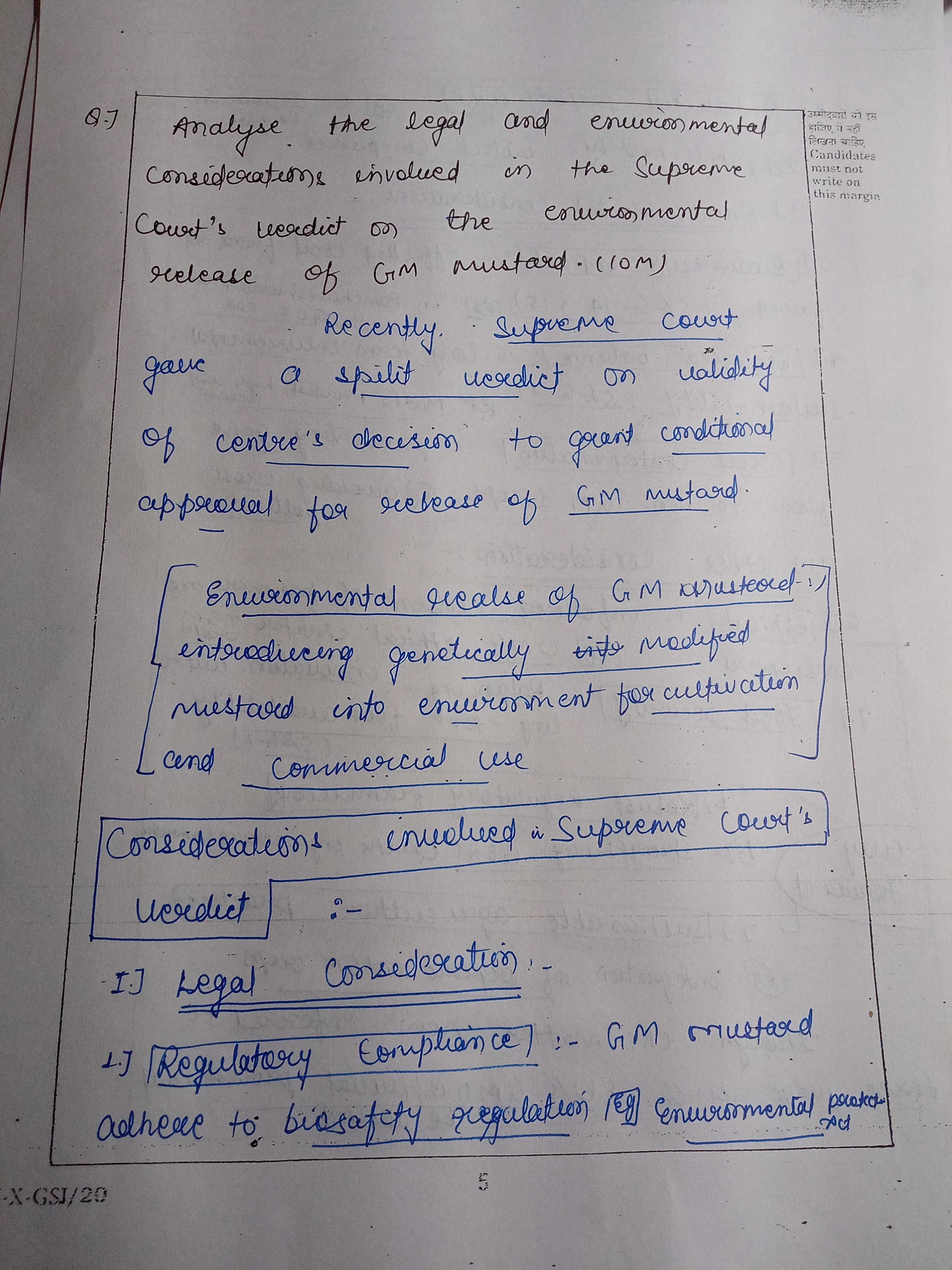 1) Analyze the legal and environmental considerations involved in the Supreme Court’s verdict on the environmental release of GM mustard.
