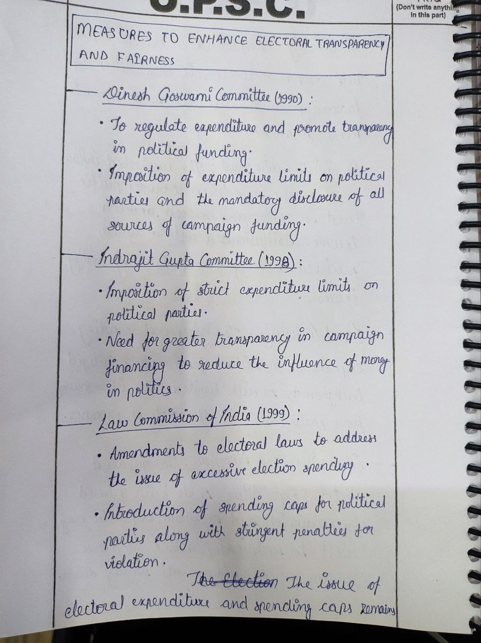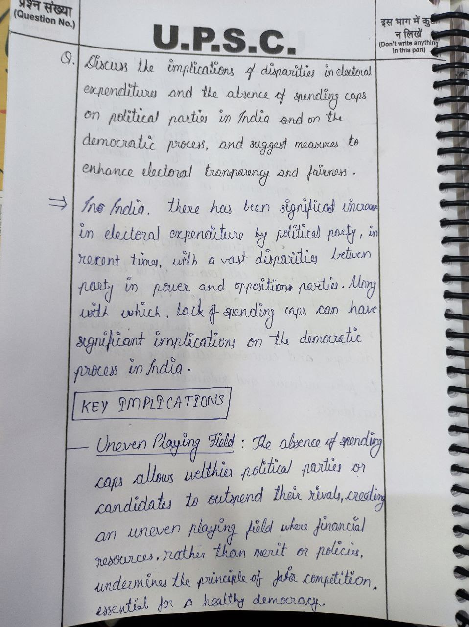 1) Discuss the implications of disparities in electoral expenditures and the absence of spending caps on political parties in India on the democratic process, and suggest measures to enhance electoral transparency and fairness.