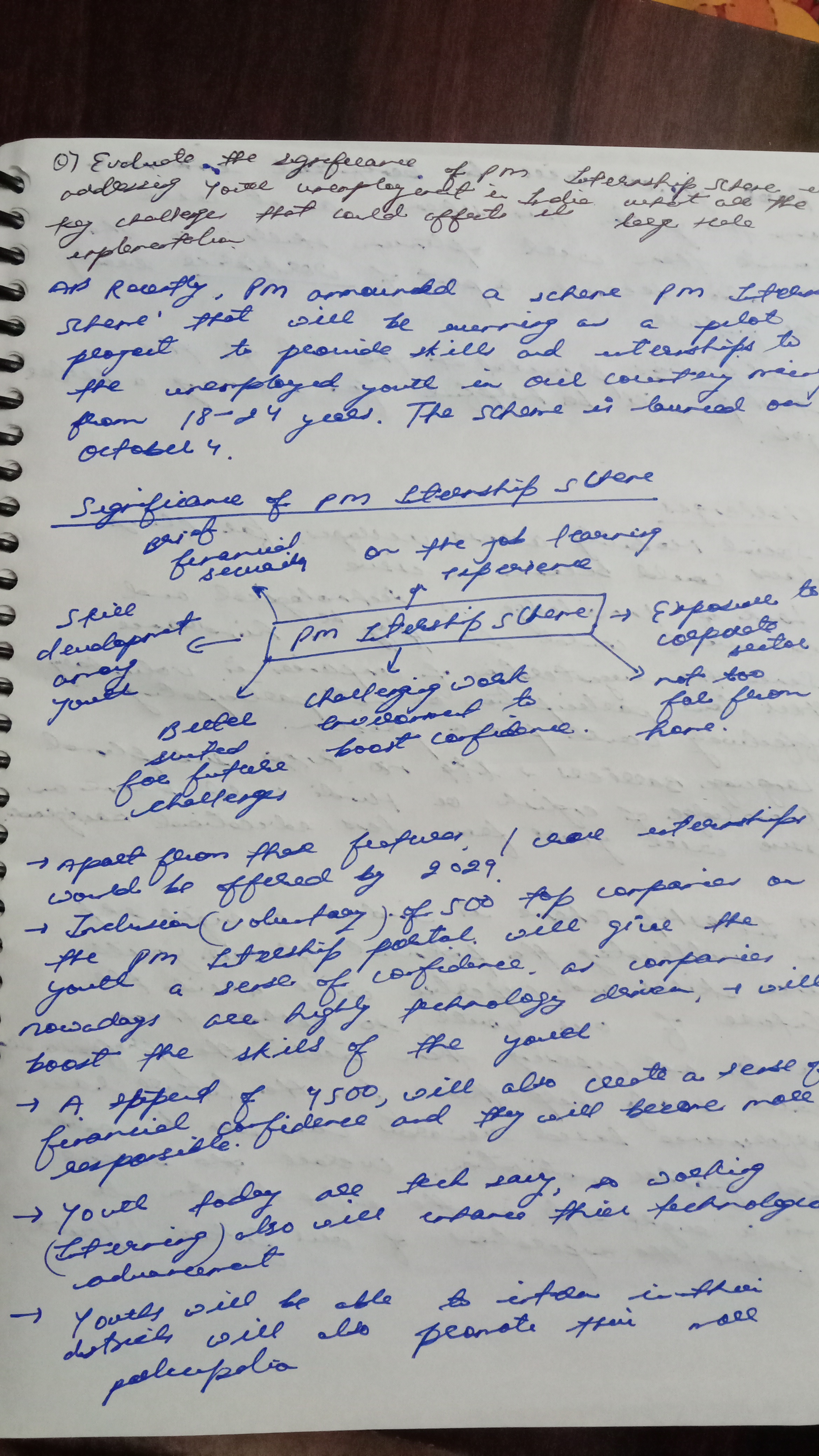2) Evaluate the significance of the PM Internship Scheme in addressing youth unemployment in India. What are the key challenges that could affect its large-scale implementation?