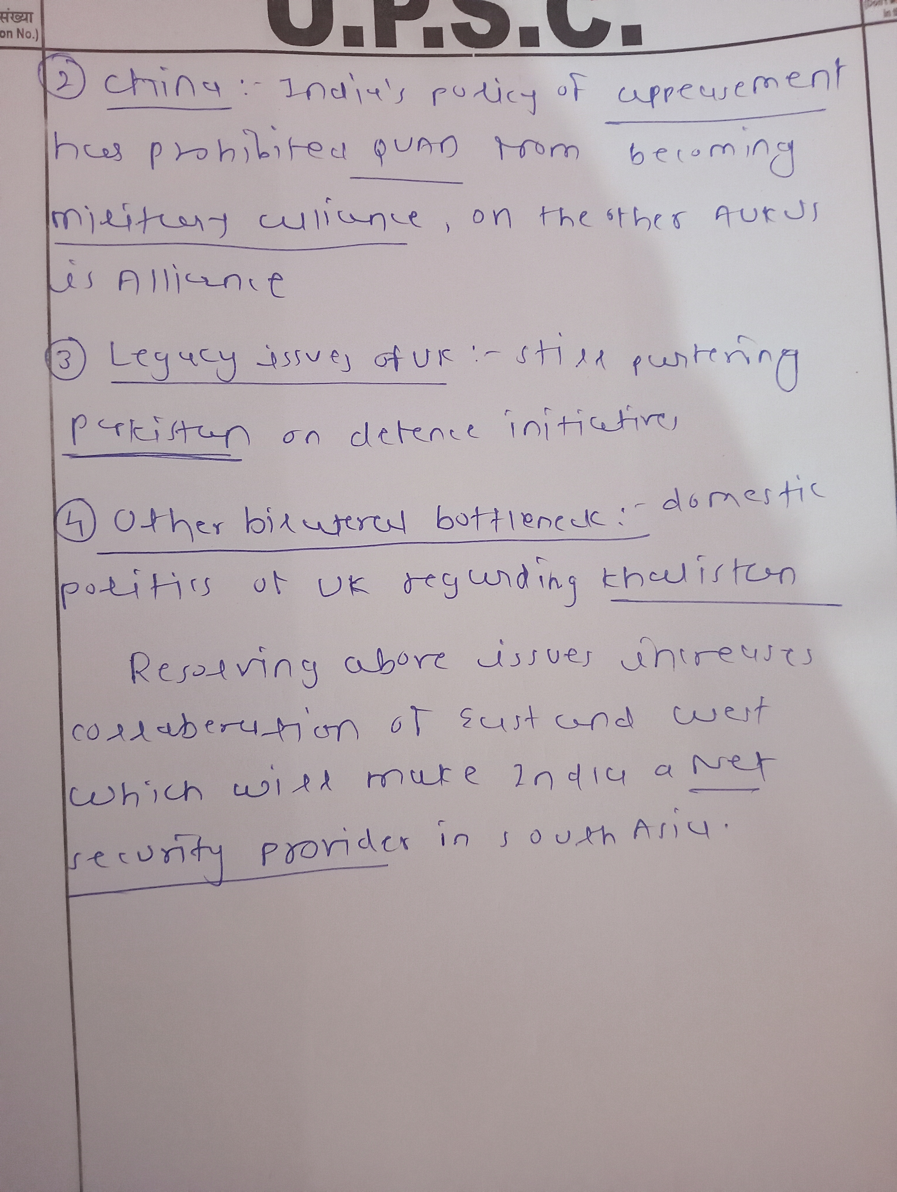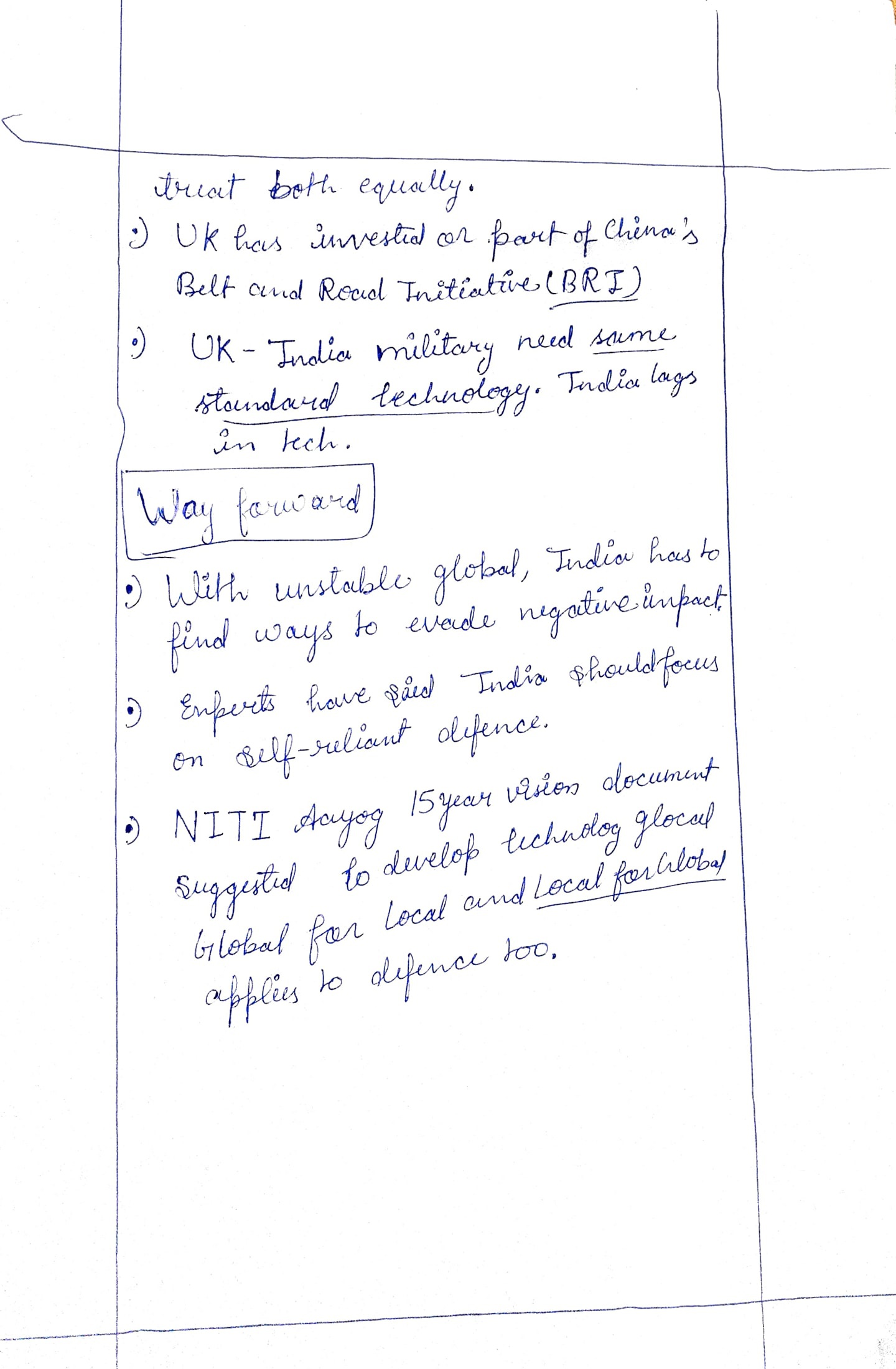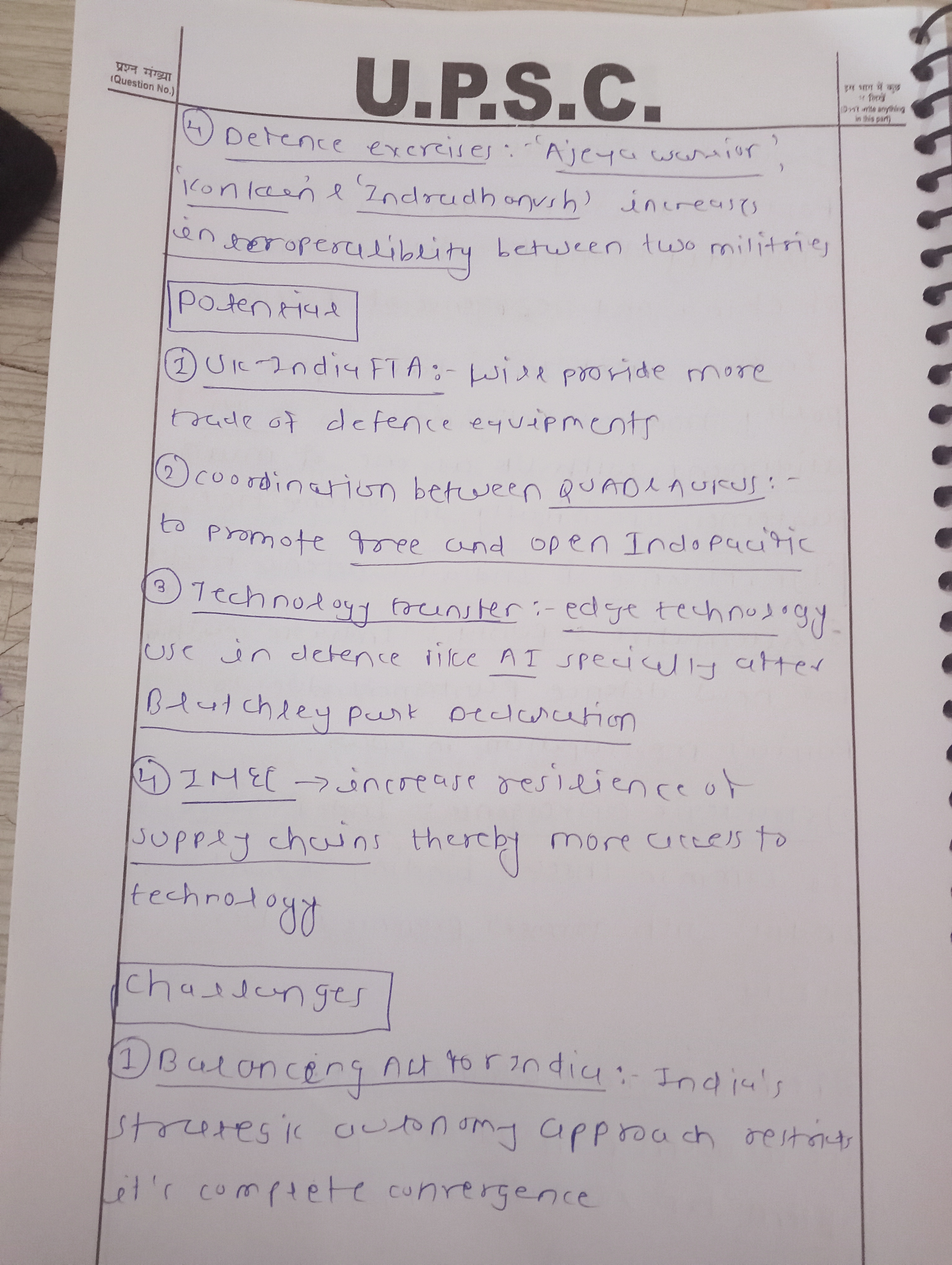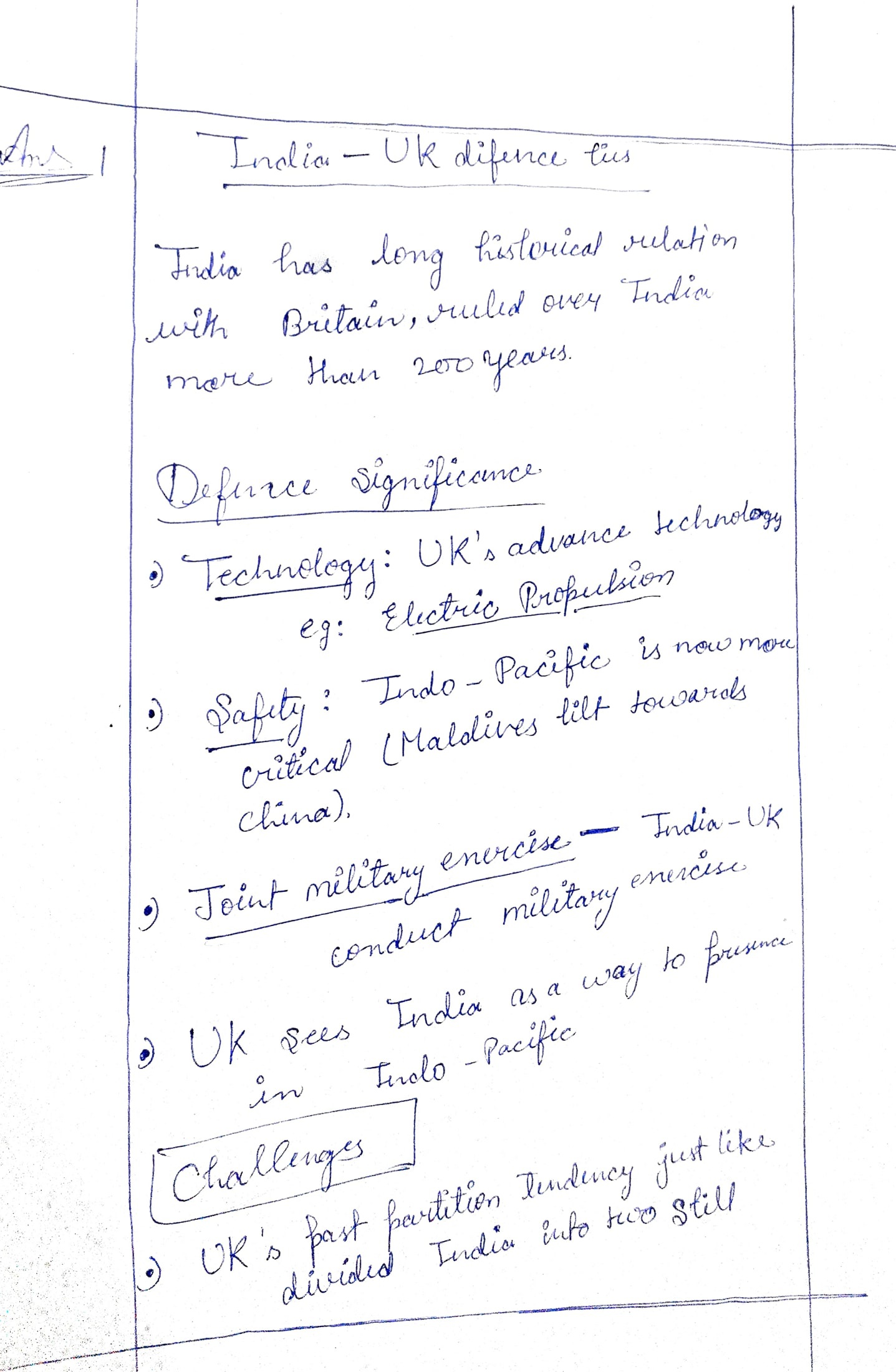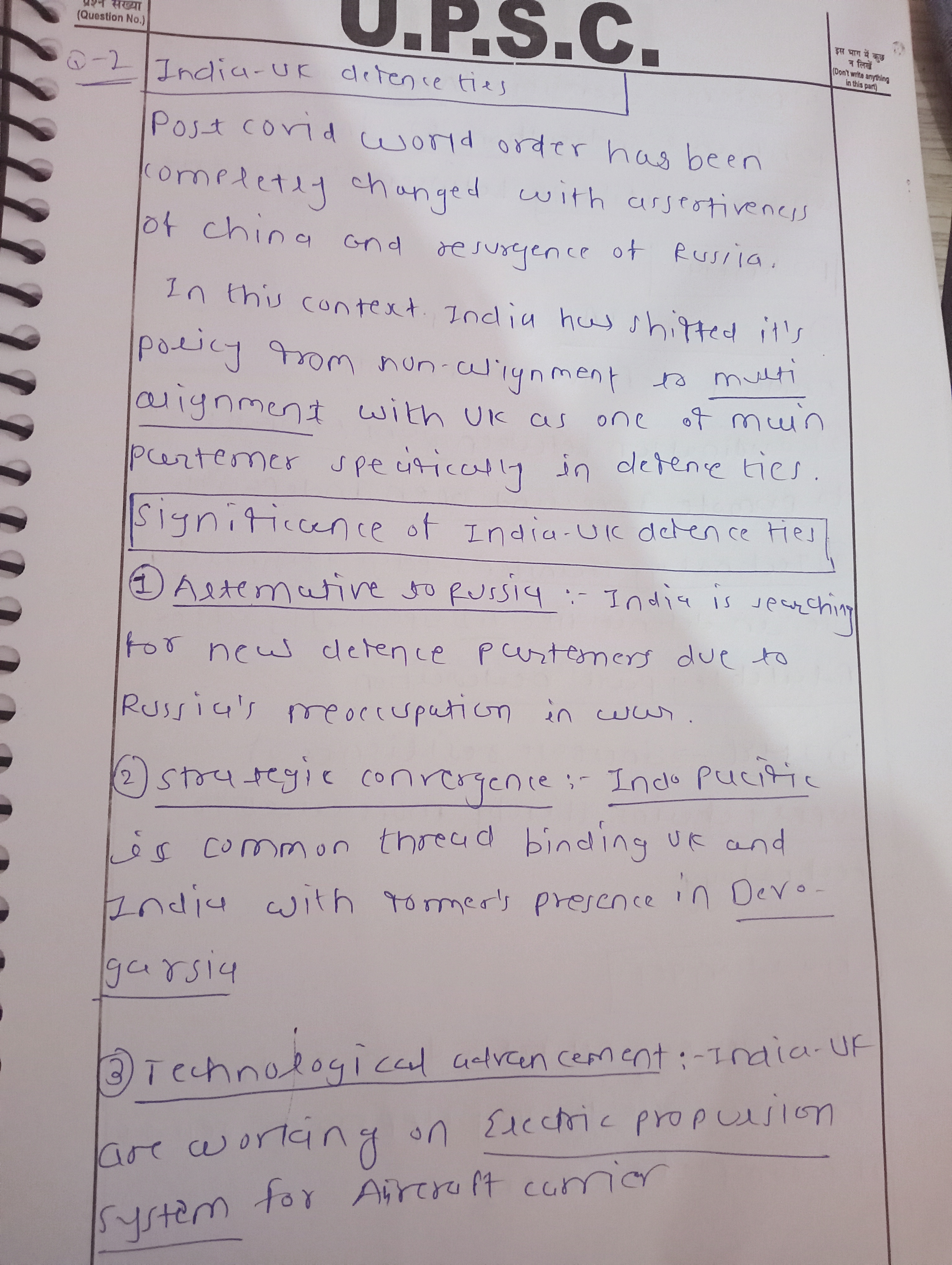 1) Examine the significance of the recent developments in India-U.K. defence ties in the context of global strategic shifts.