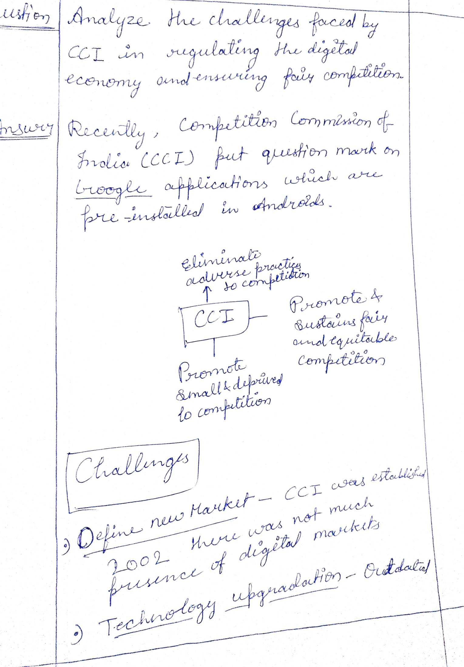 2) Analyze the challenges faced by CCI in regulating the digital economy and ensuring fair competition.