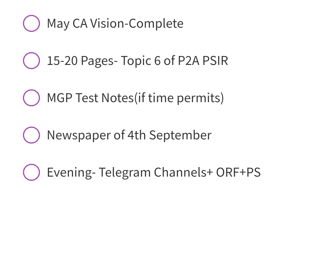 Posting my targets here for tomorrow (because shaam ke 5 baje college se wapis aakar schedule banane ka motivation is as elusive as unicorns, or me sticking to my exercise schedule XD). So targets for 5.9.22 are: