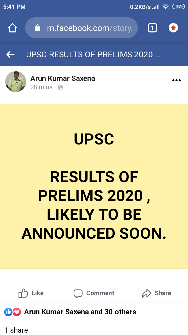 Bhai .that was the only incidence when he was correct.In 2018 prelims ,ek din mahaul bana ,jab kisi hindi daily ne ek page daala UPSC result jald hi , he in turn updated his fb wall with the same.Result nahi aaya .Phir ek din forum pe mahaul bana ki result UPSC ke notice board pe lag gaya h ,tagda mahaul , he again updated his wall.Result phir na aaya ,next day aaya .His critics say ki inka mahaul bhi apne forums and telegram groups se banta h .