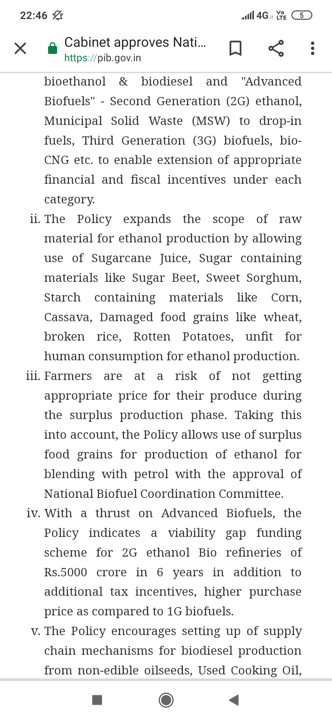 One more thing in national biofuel policy it's true that given four options can be used but there is also a point three in the notification of government that in order to make farmers get more price for their produce all excess cereals and farm grains can be sold for biofuel with permission from government ,,I think all can be correct on lines that during covid excess rice was converted into biofuel