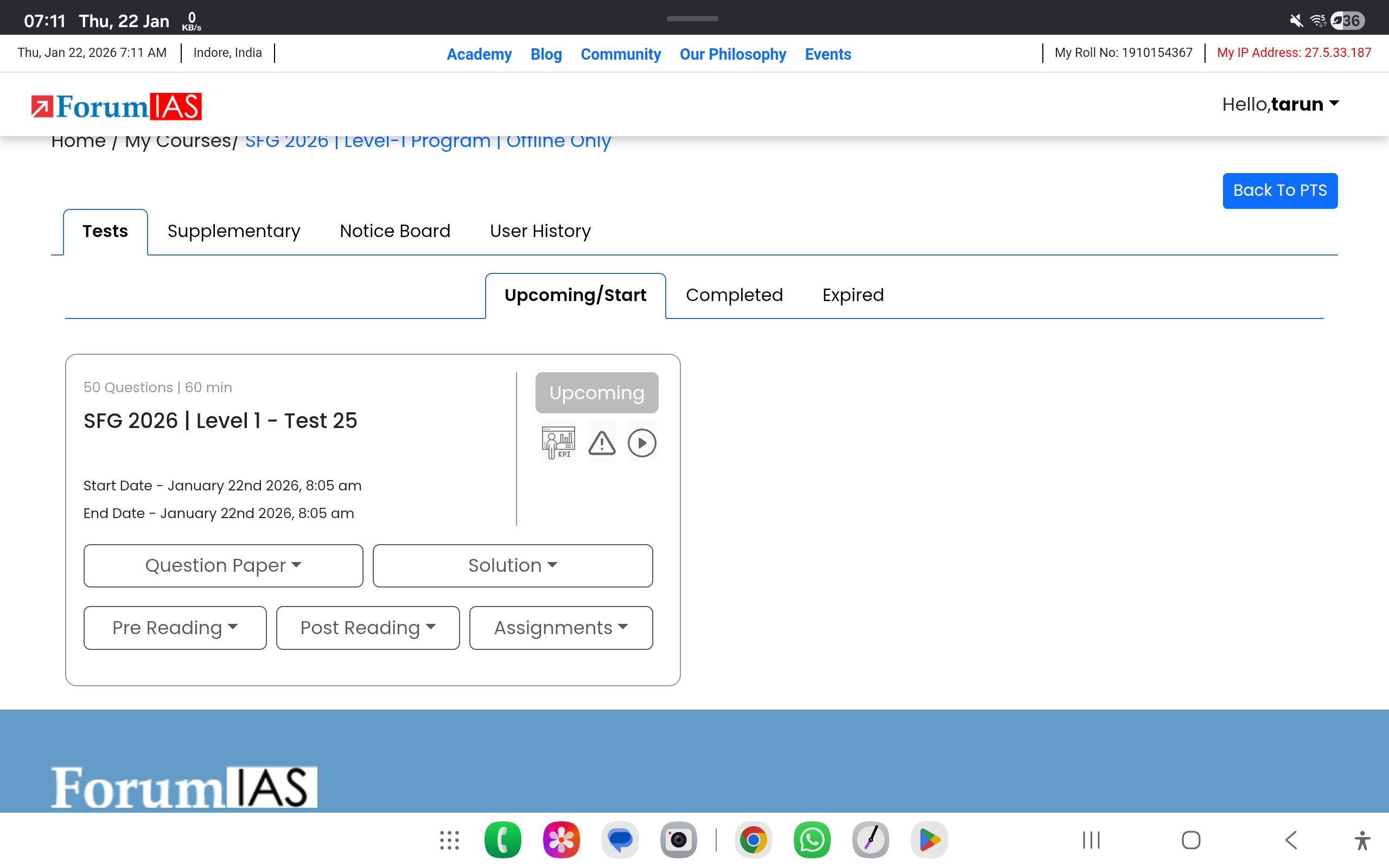 In the last two SFG online tests, I faced technical issues that affected my test attempt. Earlier, I was able to download the question paper before the test, attempt it offline, and then mark answers on the portal. This system worked smoothly up to Test 11 and was very helpful.
