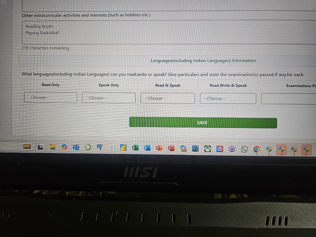 Afaik you’re supposed to fill only one language per row. You’ve filled all the languages in a single row, create separate entries for each and add what exam you passed in each.