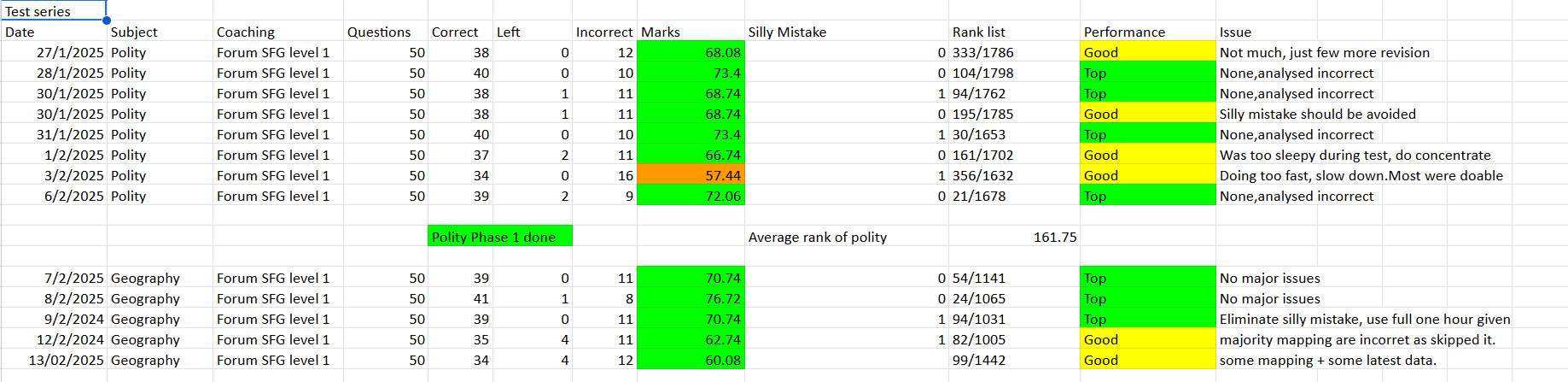 + the full length are being saved by SnT and Env mostly because of familiarity with them due to my background (JEE and Biotechnology) so the scope of improvement in polity and history is still a lot.