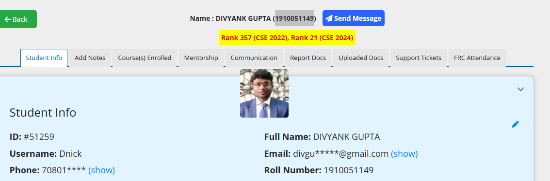 Here is his relationship with the academy ( he has cleared the exam 2 times, and has been with us in both attempts )